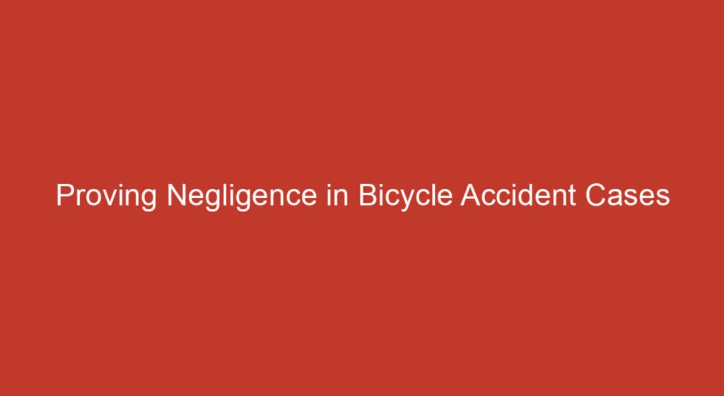 Proving negligence in bicycle accident cases involves establishing the defendant’s duty of care, showing a breach of that duty, and